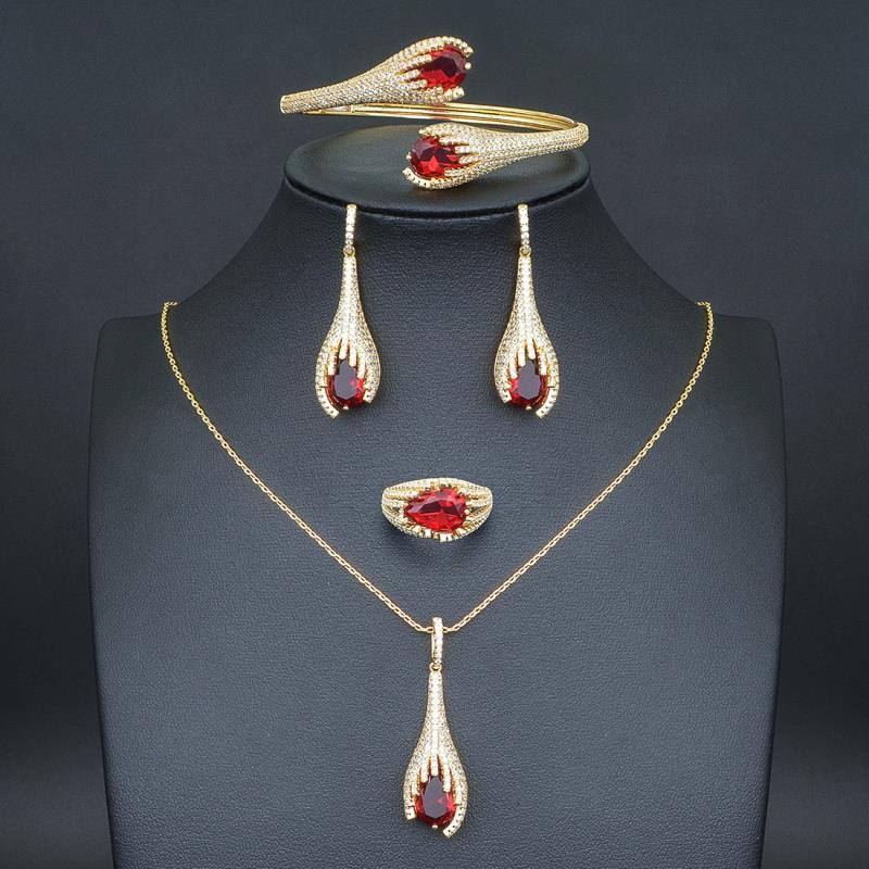 Zirconia jewelry set: chain, pendant, bangle, earing, and ring.